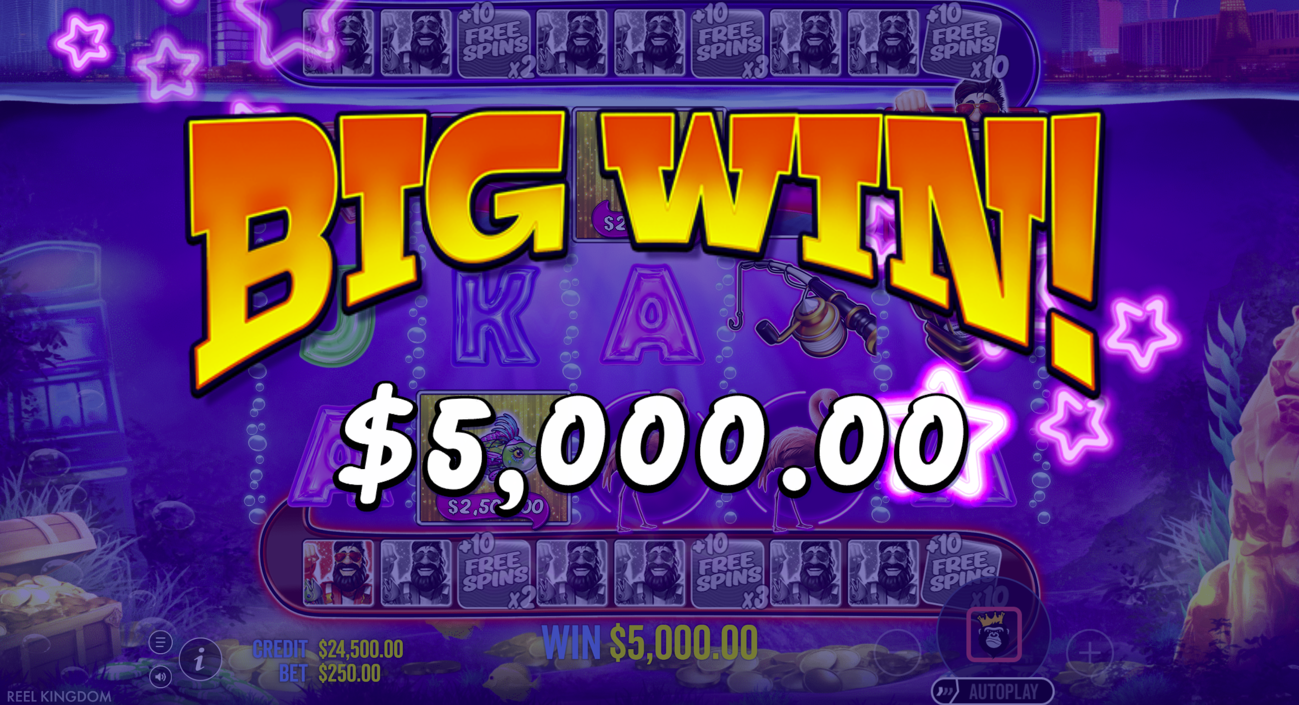 In the base game and free spins, the fisherman wild can appear in two ways: Standard Wild: Collects the values of all money fish on the screen and awards +1 extra free spin (in the bonus round). Double Down Wild: This special version does everything the standard wild does, but then DOUBLES the total collected amount before awarding it. This single feature can instantly create a monster win.